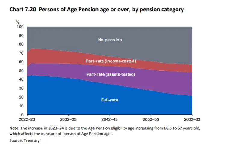 While this may appear to be a helpful statistic to the super boosters, a majority of Australians are still projected to be receiving a pension or other income support payment by 2062-63.
